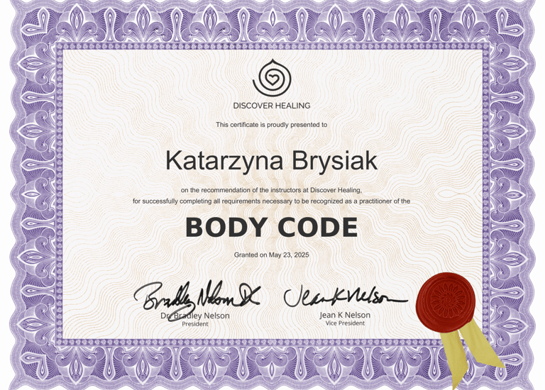 Inspirację czerpię z metod stworzonych przez dr. Bradleya Nelsona, który nauczył mnie, jak prostymi technikami uwolnić to, co nie służy, i otworzyć przestrzeń na radość i harmonię.